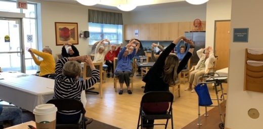 Through Mercy Housing Lakefront’s partnership with Aging Care Connections this incredible Chair Yoga class is offered at no cost to residents. “They make classes interesting and fun,” says Director of Resident Services, Jennifer. She knows residents very well and enjoys seeing how much they engage with activities like Chair Yoga.
