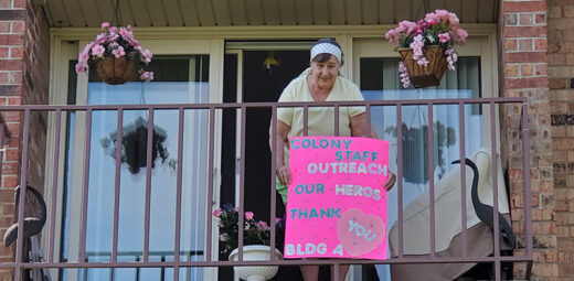 Residents participated from their balconies to join in song with Colony Park’s staff. Music can trigger memories and reduce anxiety. During these unprecedented days of shelter in place, the Colony Park team introduced a creative approach to engage residents while respecting social distancing.