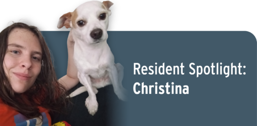 “Hello! My name is Christina! I’m a 22-year-old with autism along with other mental health challenges. I moved here [Francis Peak View] in April 2021 and live with my Emotional Support Dog, training for service work, Jax.
