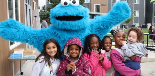 Along with community partner United Healthcare, Mercy Housing welcomed Cookie Monster, who spent time taking photos with the kids (and adults, too), handing out brand new Sesame Street books, and giving high fives to new friends. As hard as it was, Cookie Monster did not eat any of the cookies made available, saving them instead for all the kids (talk about self-control).