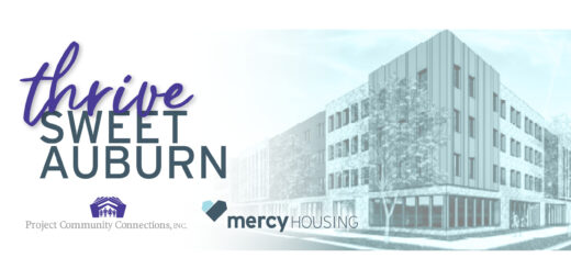 A collaboration between Project Community Connections Inc. (PCCI) and Mercy Housing Southeast, Thrive Sweet Auburn is a mixed-use development in Atlanta’s Old Fourth Ward created to provide operating space for PCCI, a vital nonprofit serving people exiting homelessness, paired with 117 high-quality affordable apartments. This new development, which is leasing up now, is located close to transit, employment centers, medical services and community amenities.