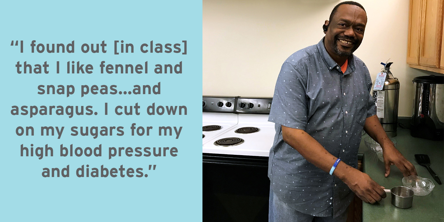Eating healthy food is not a choice that most people experiencing homelessness can make, and the consequences to their health can be devastating. Farrell Mike knows this reality all too well. During the years he was homeless, Farrell’s health deteriorated, and he was hospitalized many times. Two years ago, Farrell moved into his new home
